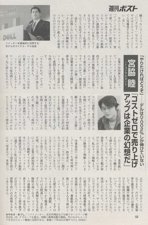 −> 【記事】ツイッターを疑え!<週刊ポスト10年4月12日発売>